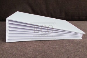 Okładki wykonane są z tektury ok. 2 mm, oklejone białym płótnem.