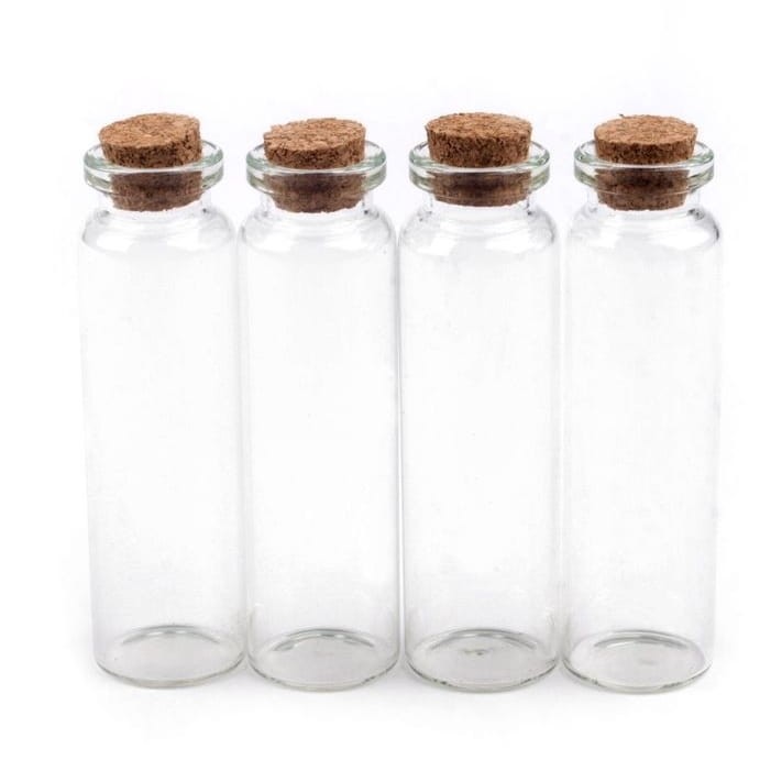 Buteleczki szklane z korkiem 20x75 mm (zestaw 4 sztuk)