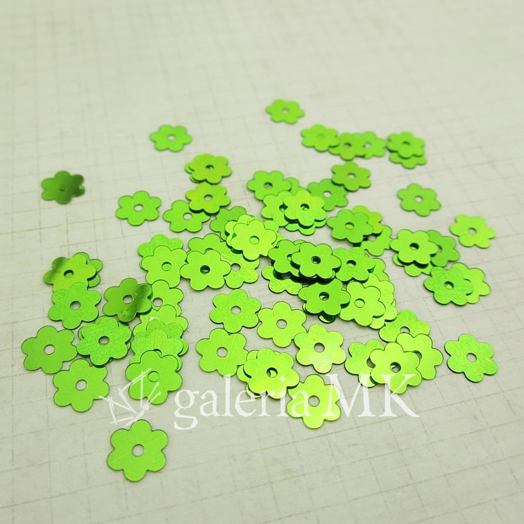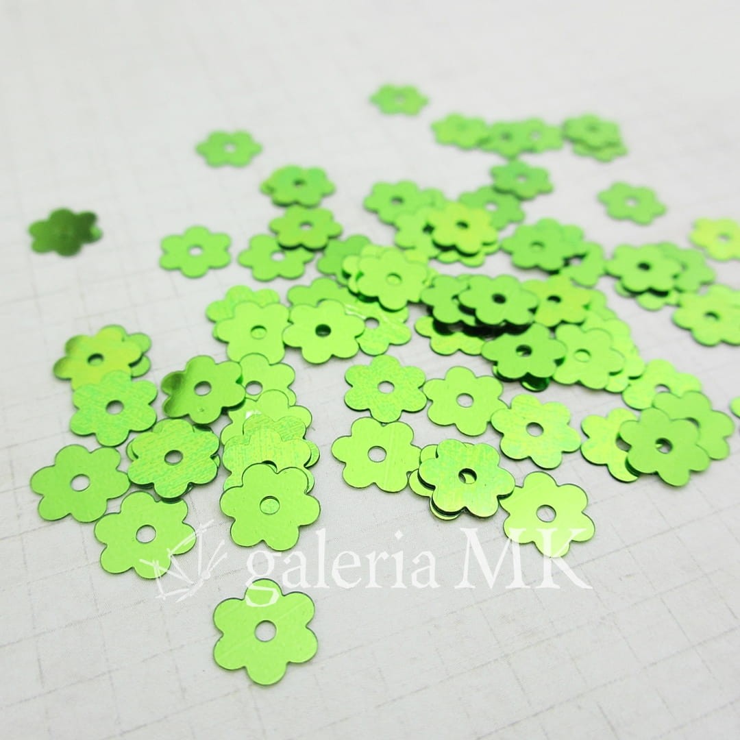 Cekiny 8 mm - kwiatek - zielony metallic - 75szt