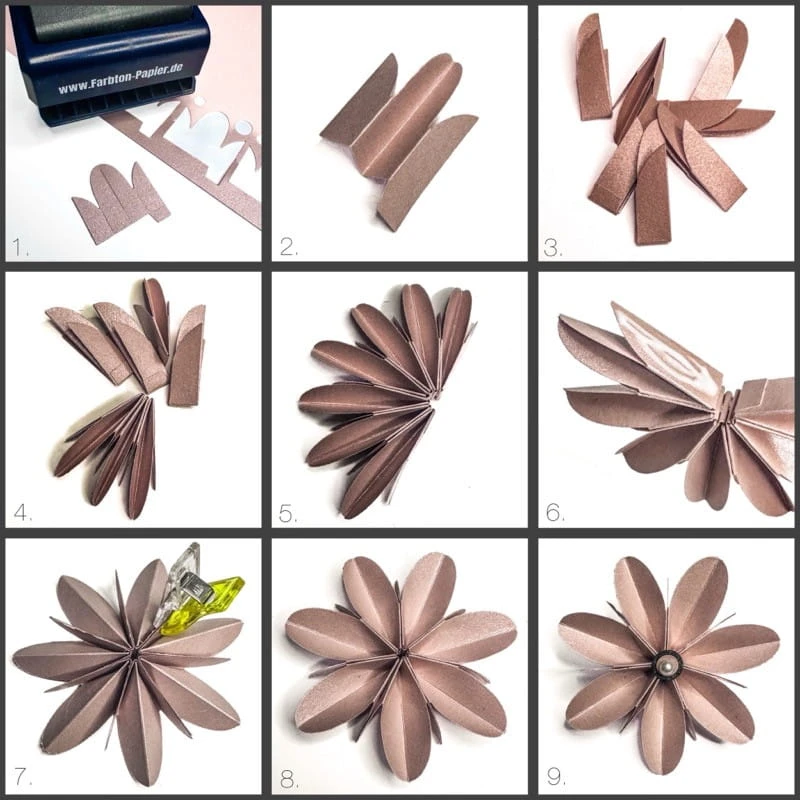 Gotowy kwiat z 7 płatkami ma średnicę ok. 6,7 cm.