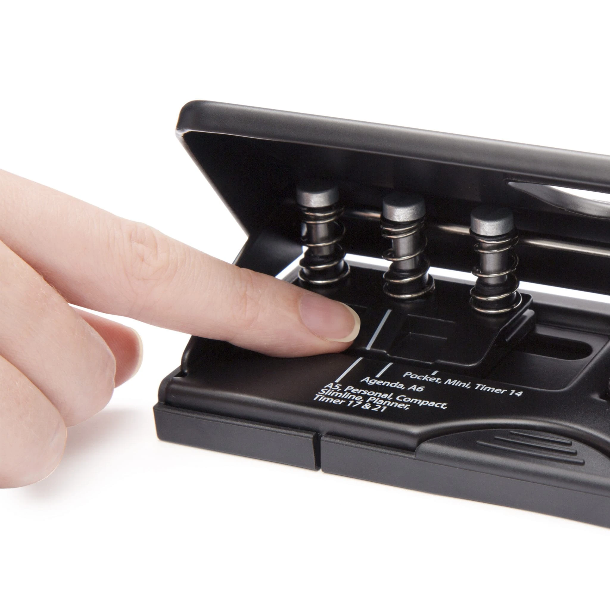 Dziurkacz 6-otworowy regulowany. Wykonuje 6 otworów dla różnych typów planerów, organizerów, kompatybilny z planerami Elizabeth Sidekicks.