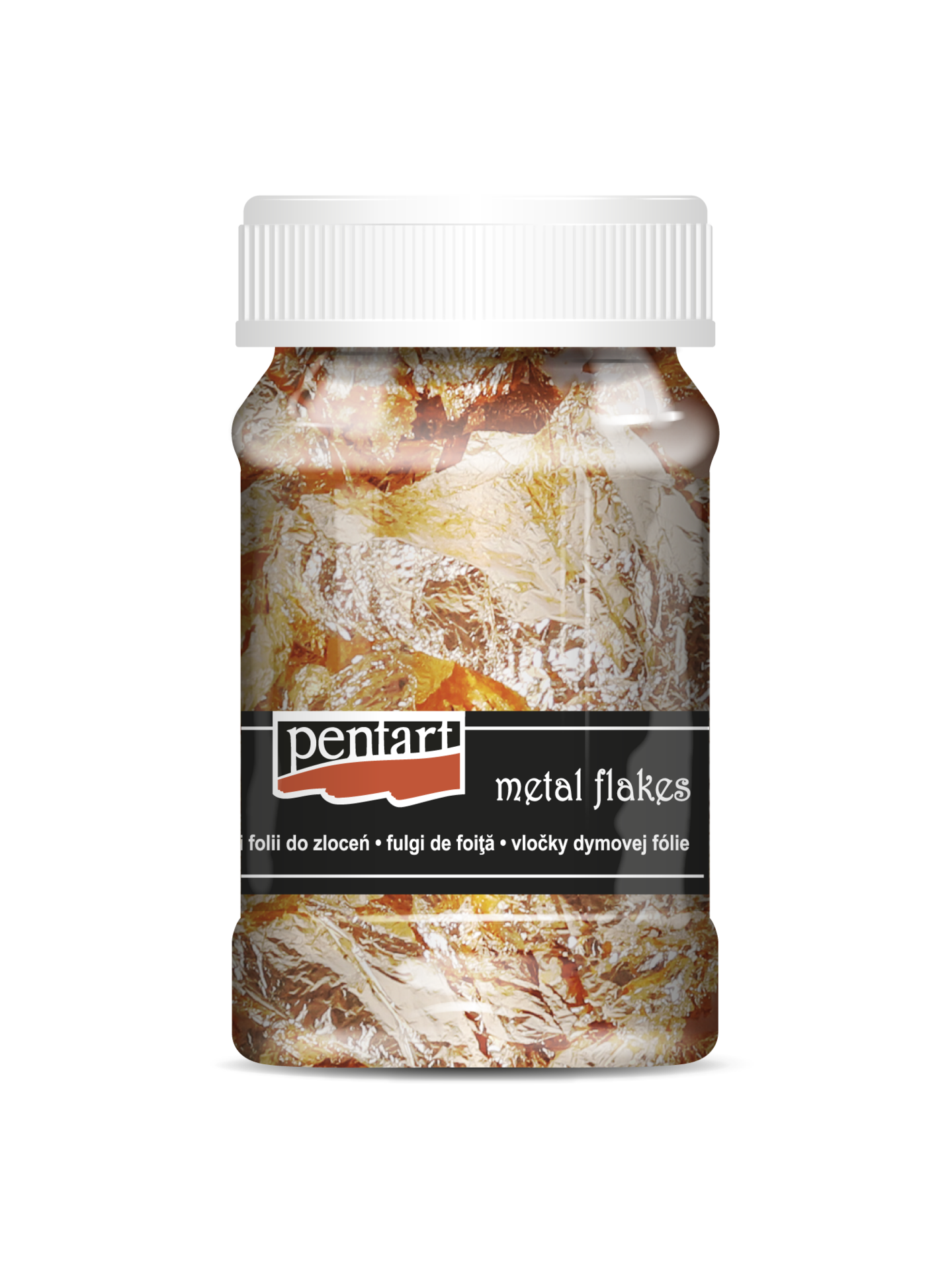 Płatki metalu do tworzenia pozłacanych lub innych metalicznych powierzchni.