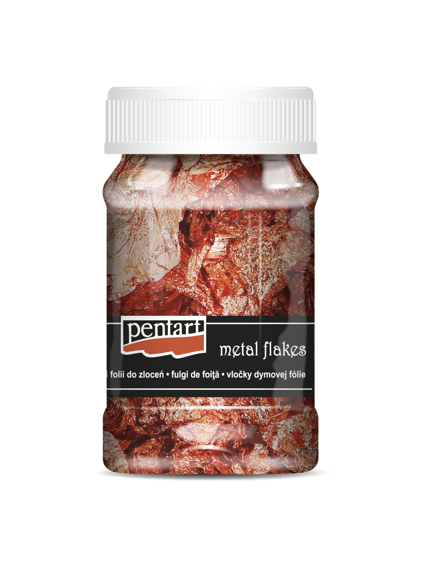 Bardzo cienka warstwa kolorowej folii z metalicznym połyskiem, którą należy przykleić do powierzchni za pomocą kleju Tacky Glue lub Metal Leaf Glue.
