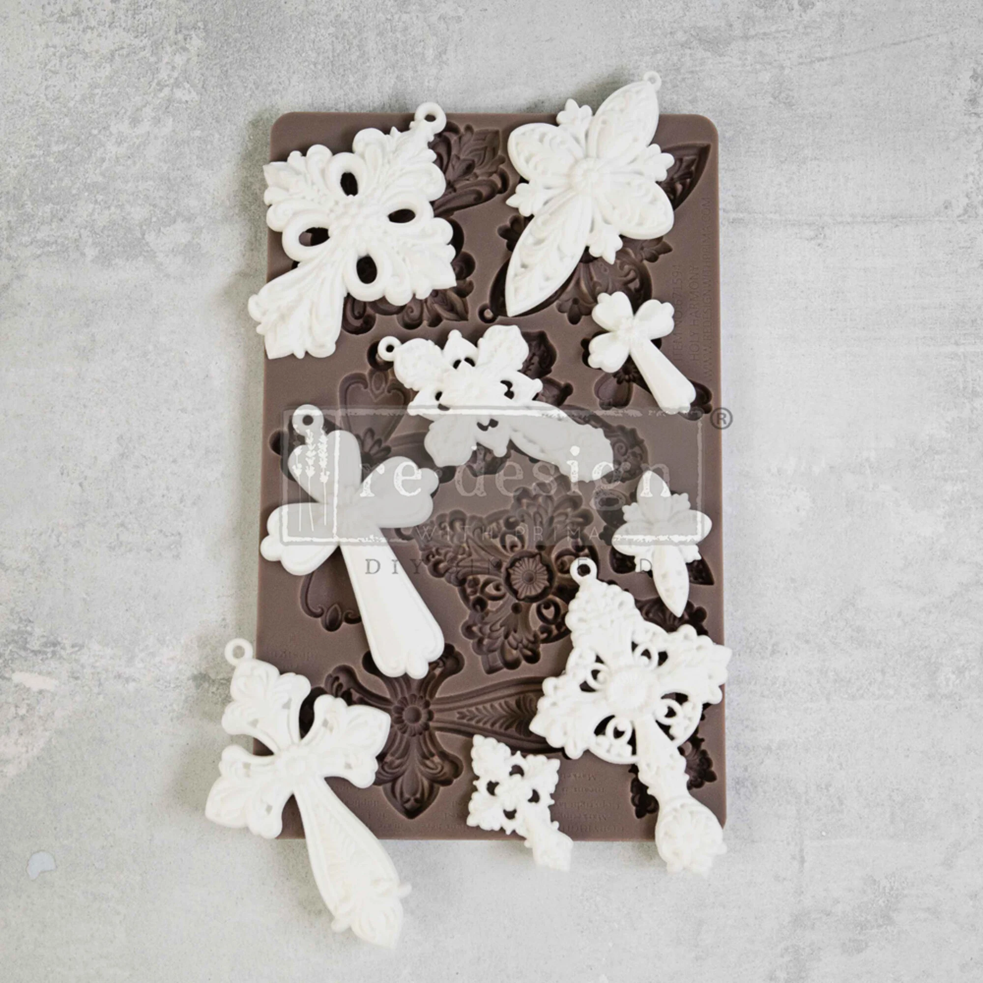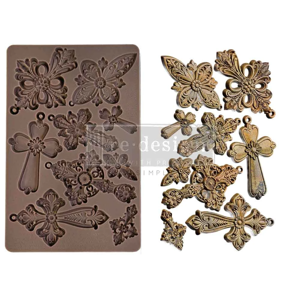 Foremka Holy Harmony zawiera dziewięć szczegółowych krzyży, z kwiatowymi wzorami i motywami ozdobnymi.