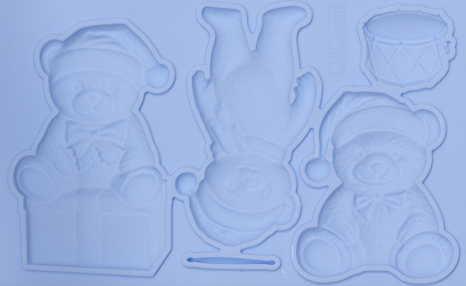 Foremka wykonana z wysokiej jakości silikonu przedstawiająca misie ubrane w świąteczne stroje.