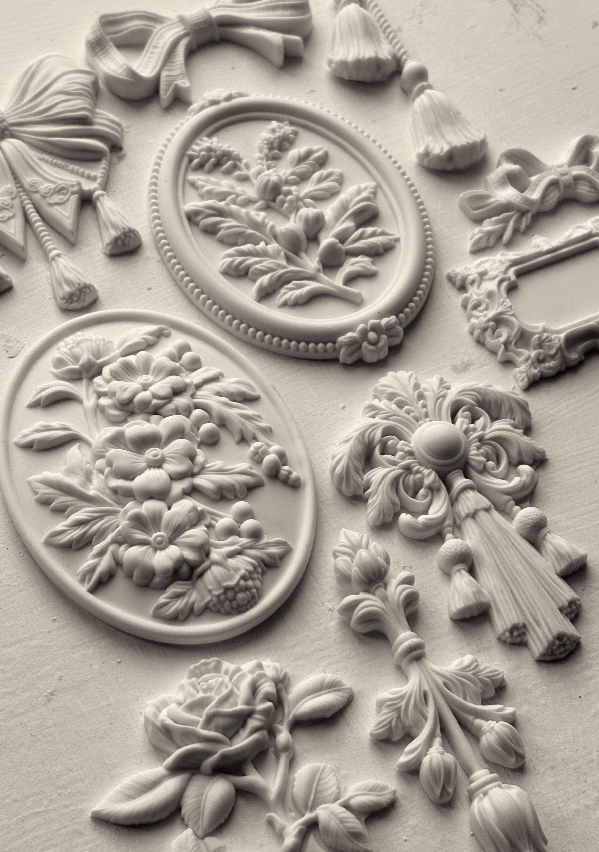 Foremka silikonowa przedstawiająca mnóstwo elementów dekoracyjnych
