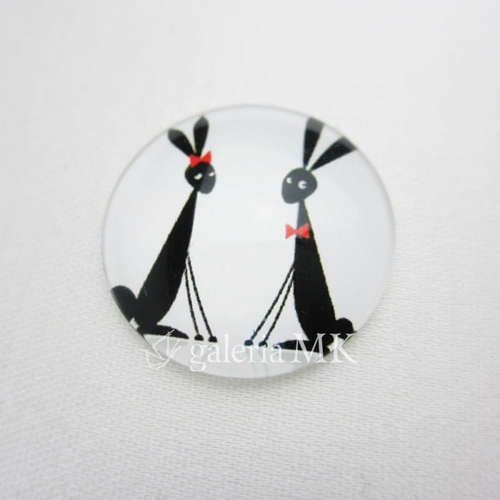 Kaboszon szklany z grafiką, 25 mm, czarno – biały
