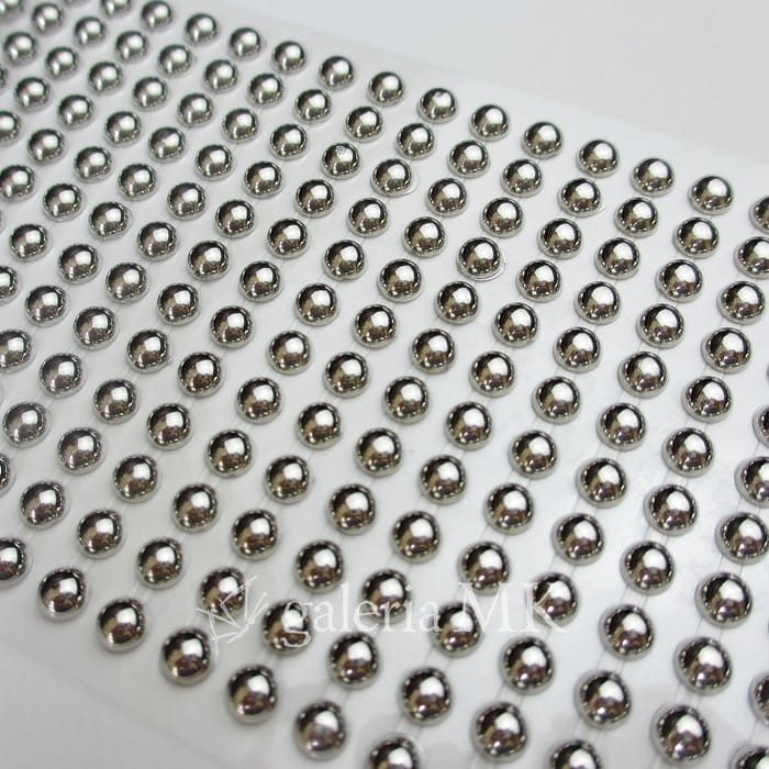 Kropki srebrne 6mm na pasku klejowym (216szt)