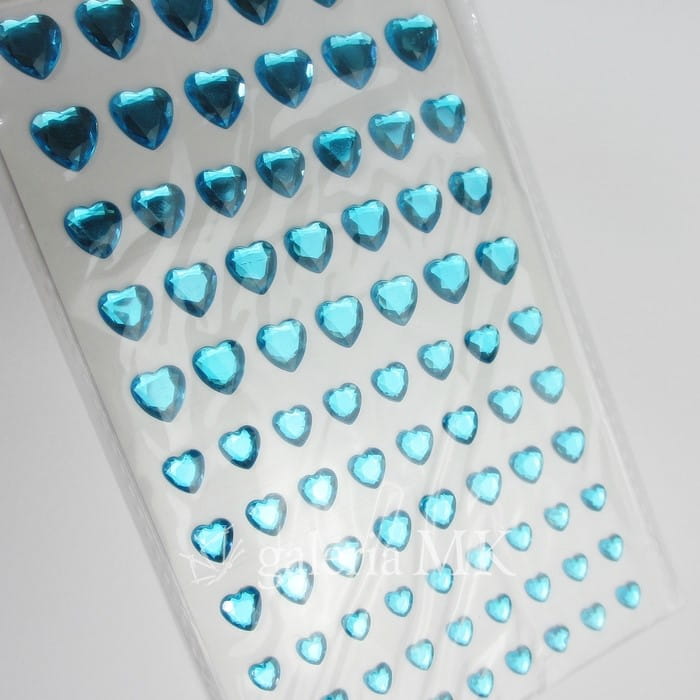 Serca turkusowe - kryształki samoprzylepne