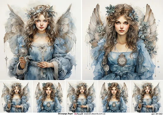 Papier do decoupage w rozmiarze A4 (210 x 297 mm) przedstawiający anioły.