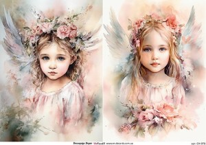 Papier do decoupage w rozmiarze A4 (210 x 297 mm) przedstawiający dziewczynkę anioła.