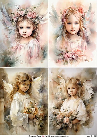 Papier do decoupage w rozmiarze A4 (210 x 297 mm) przedstawiający dziewczynki anioły.