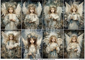 Papier do decoupage przedstawiający dziewczynki aniołki.