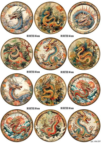 Papier do decoupage Medaliony ze smokami AN-297