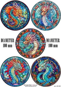 Papier do decoupage Medaliony ze smokami AN-302