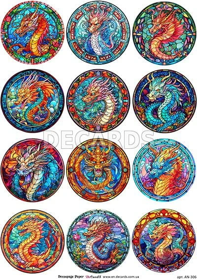 Papier do decoupage Medaliony ze smokami AN-306