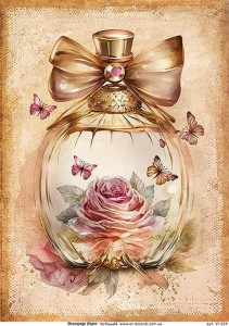 Papier do decoupage w rozmiarze A4 (210 x 297 mm) przedstawiający flakon z perfumami.