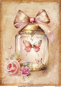 Papier do decoupage w rozmiarze A4 (210 x 297 mm) przedstawiający flakon z perfumami.