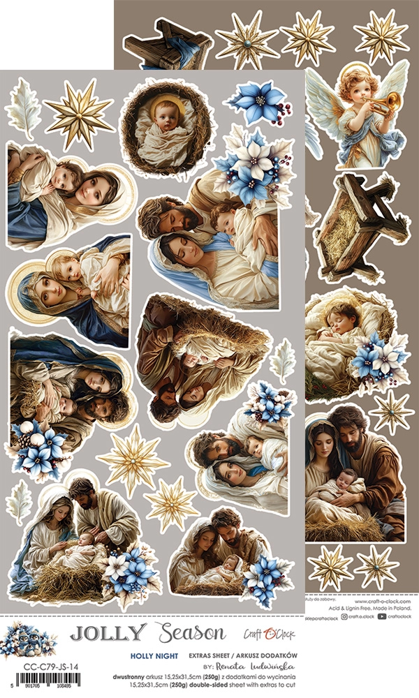 Dwustronny arkusz wysokiej jakości papieru do scrapbookingu z dodatkami do samodzielnego wycięcia.