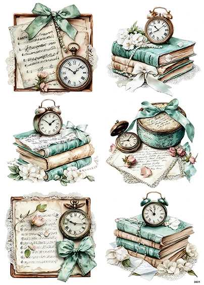 Papier ryżowy A4 Książki i zegary (3631)