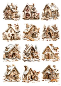Papier ryżowy A4 Myszki, Domki z piernika (1155)