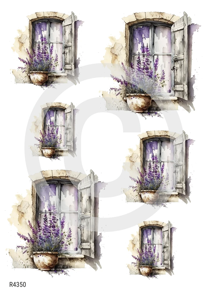 Papier ryżowy A4 Pejzaż - okna z lawendą - @mariviriDesign (R4350)