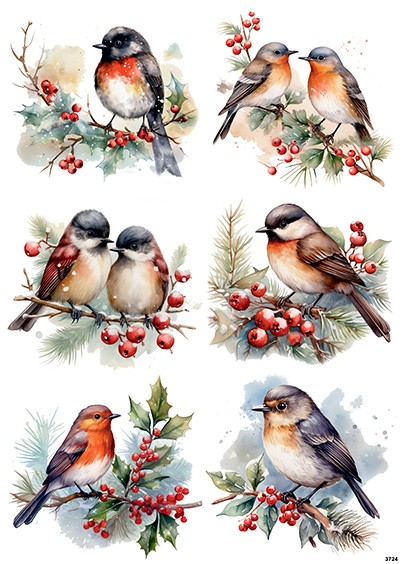 Papier ryżowy A4 Ptaki z jarzębiną (3724)