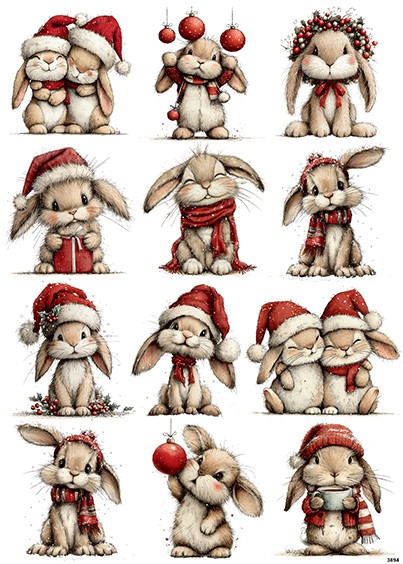 Papier ryżowy A4 Świąteczne króliki (3894)