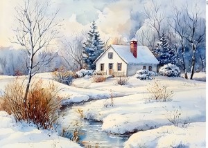 Papier ryżowy A5 Domek zimą (14576)