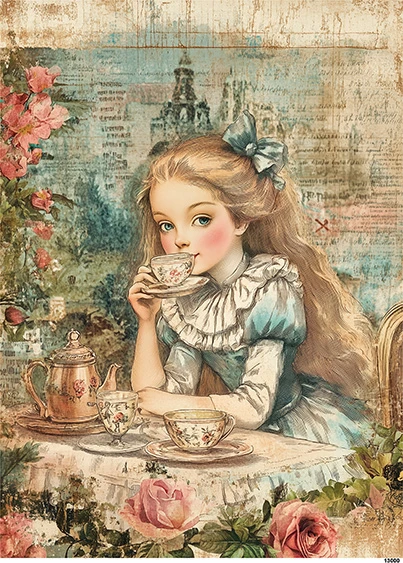 Papier ryżowy A5 Dziewczynka z kawą (13000)