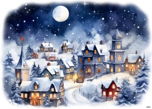Papier ryżowy A5 Miasteczko zimą (14841)