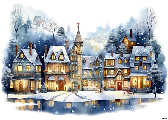 Papier ryżowy A5 Miasteczko zimą (14849)