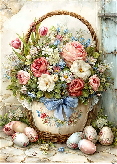 Papier ryżowy A5 Wielkanoc Shabby chic - Kwiaty i pisanki (18821)