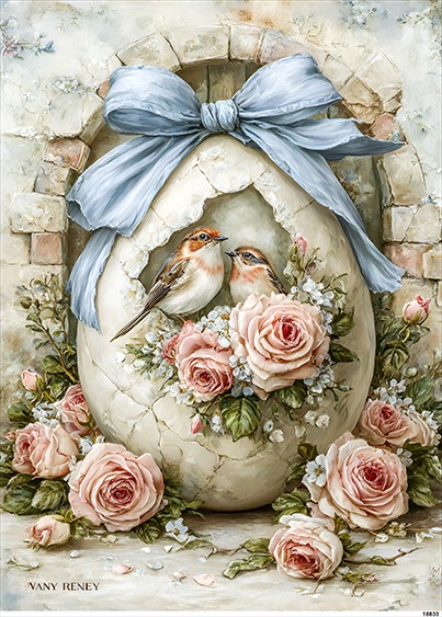 Papier ryżowy A5 Wielkanoc Shabby chic - Pisanka i ptaszki (18833)
