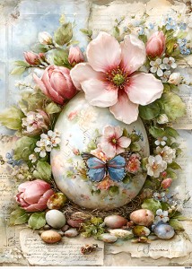 Papier ryżowy A5 Wielkanoc Shabby chic - Pisanka w kwiatach (18844)