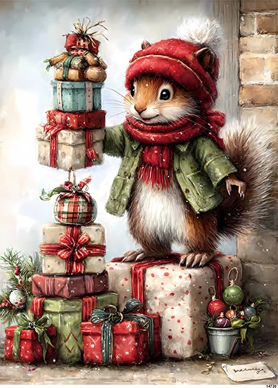 Papier ryżowy A5 Wiewiórka z prezentami (14730)
