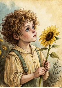 Papier ryżowy A6 Chłopiec ze słonecznikiem (17674)