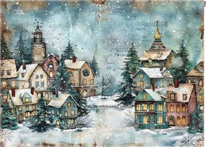 Papier ryżowy A6 Domki zimą (13968)