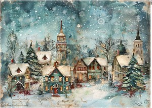 Papier ryżowy A6 Domki zimą (13971)