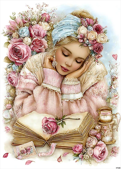 Papier ryżowy A6 Dziewczyna w różach (17105)