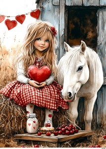 Papier ryżowy A6 Dziewczynka w czerwieni z koniem (16741)