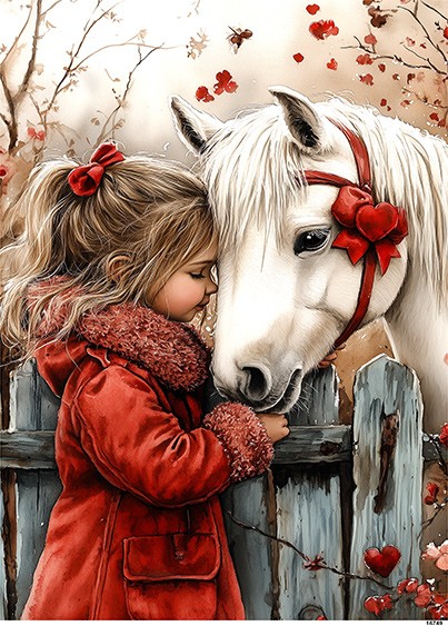 Papier ryżowy A6 Dziewczynka w czerwieni z koniem (16749)