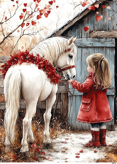 Papier ryżowy A6 Dziewczynka w czerwieni z koniem (16771)