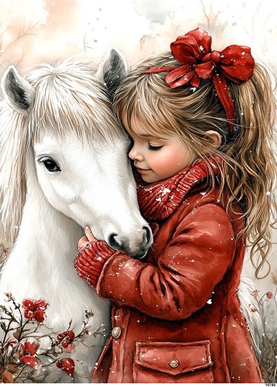 Papier ryżowy A6 Dziewczynka w czerwieni z koniem (16785)