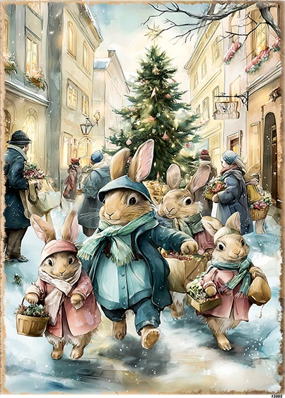Papier ryżowy A6 Króliki retro (13995)