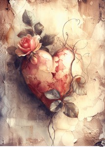 Papier ryżowy A6 Serce z różą (10255)