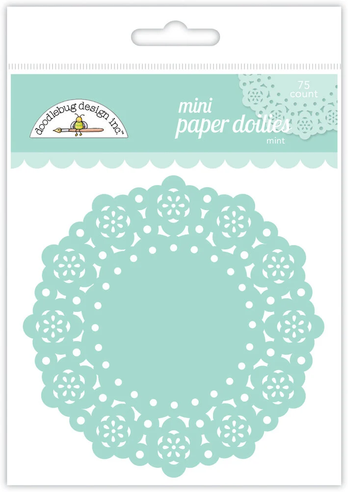 Dekoracyjne serwetki w kolorze miętowym o wymiarach 7,5 x 7,5 cm.
