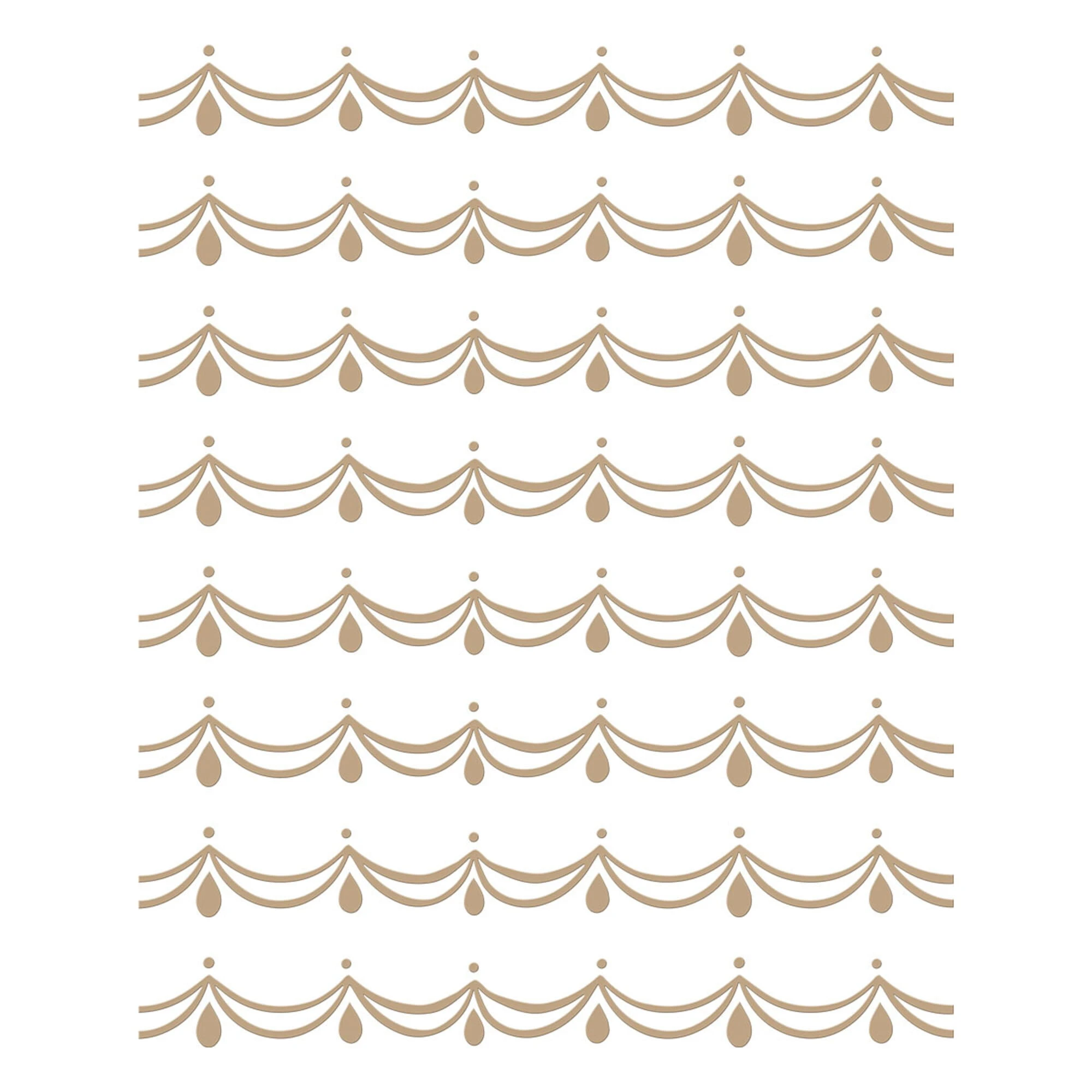 Ta płytka ma klasyczne tło inspirowane połączeniem miękkich zaokrąglonych elementów, łez i wzorów w kształcie kół. Powtarzający się wzór stanowi eleganckie tło do tworzenia kartek i nie tylko!
