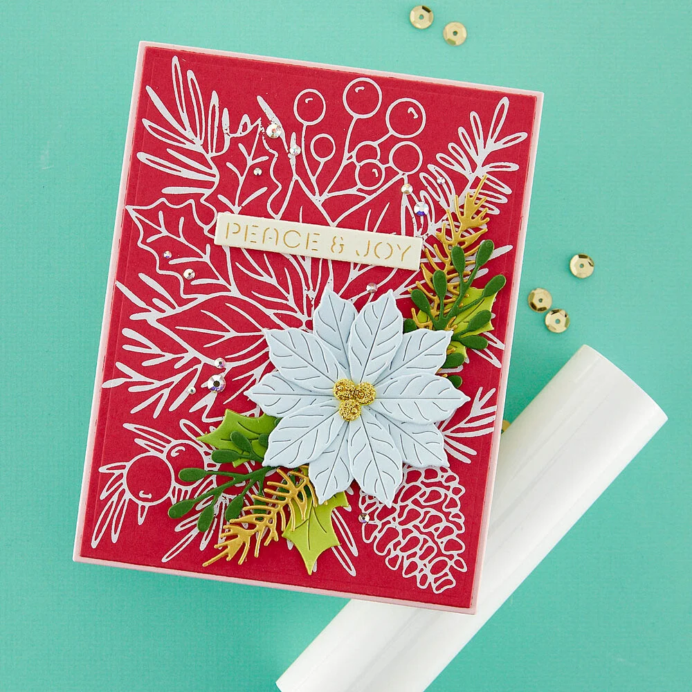 Ta płytka na gorąco z klastrem Poinsettia stanowi niesamowity punkt centralny na każdej karcie.
