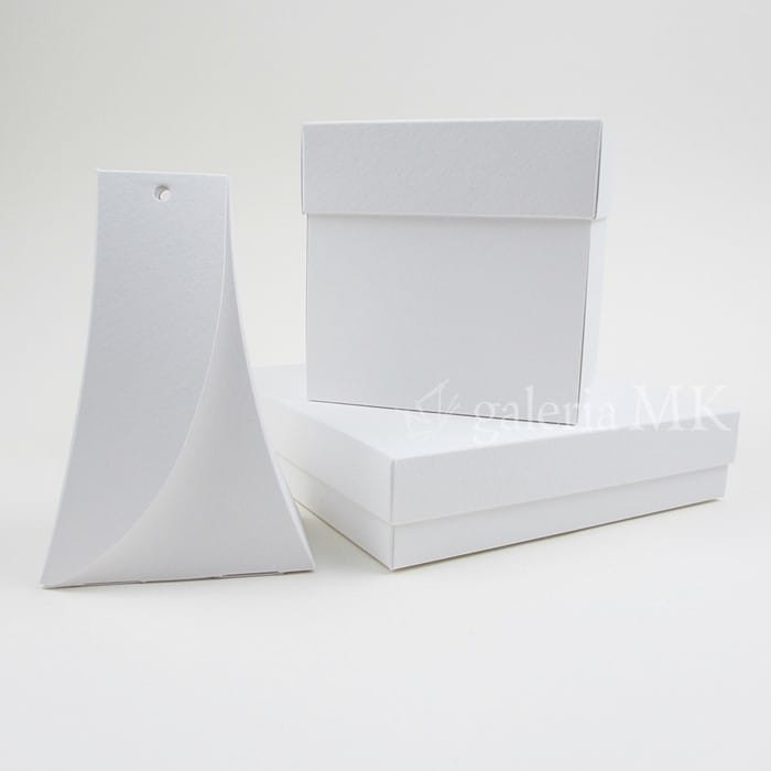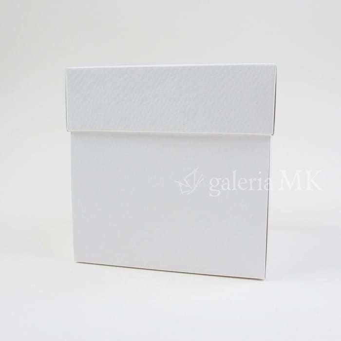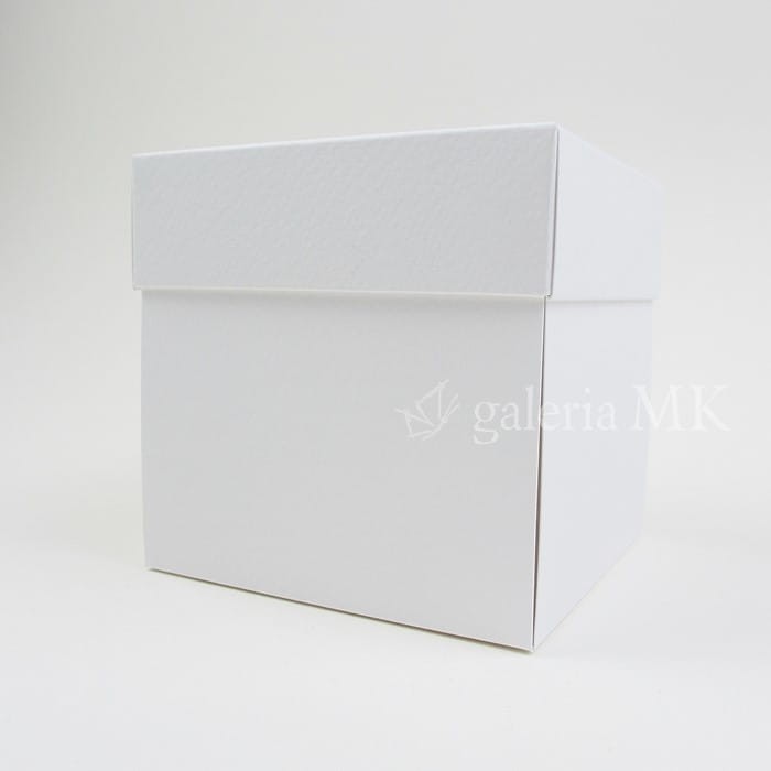 Pudełko exploding box, biel naturalna z fakturą, rozmiar 10 x 10 x 10 cm, wieczko wys. 3,1 cm.
